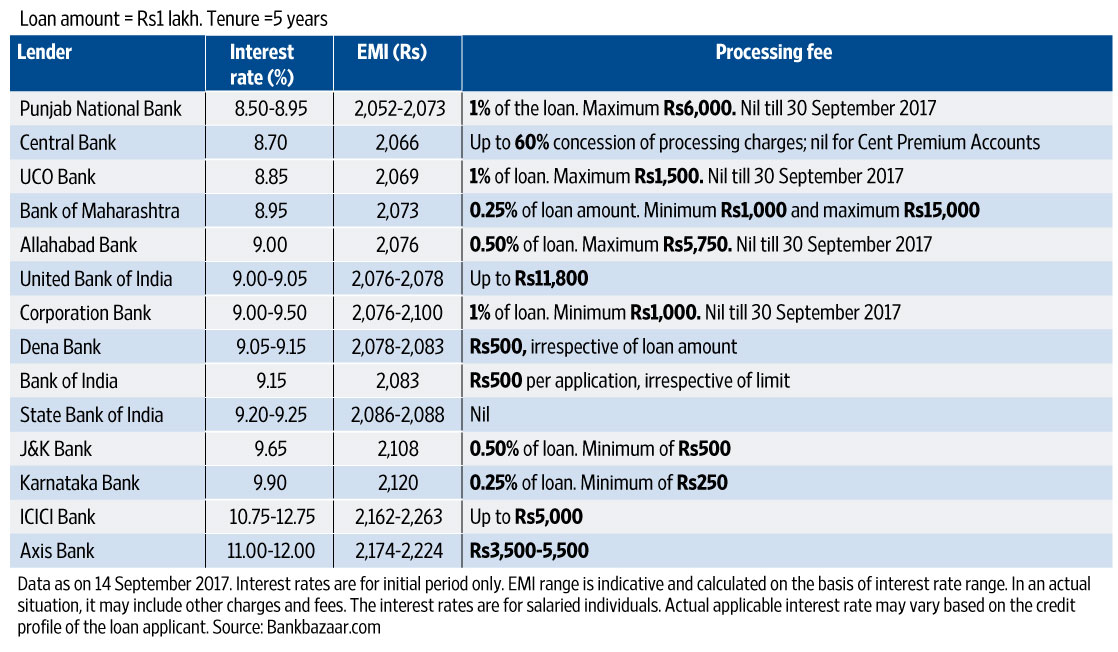 tPara>Interest rates for car loans vary across banks. Here are the interest rates offered by few of the major ones
